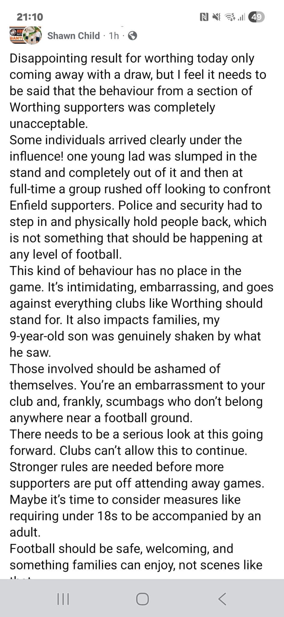 @dorking-eagle Yeah I saw a few posts from Enfield fans saying how bad they were inside and out the ground. I’m surprised the club haven’t acted and weeded the out yet. I’m sure they will be in attendance at Meadowbank next week amongst the 600 away fans